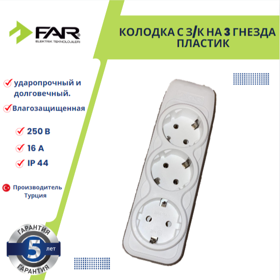 Купить Колодка удлинителя 3 розетки, заземление