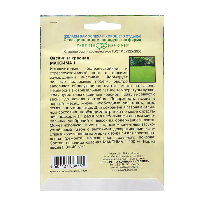 Семена Овсяница "Максима 1", красная, 20 г интересное: