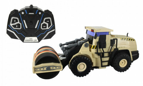 1toy робот на р/у, трансформируется в строительный каток, со светом и звуком, 38см, коробка