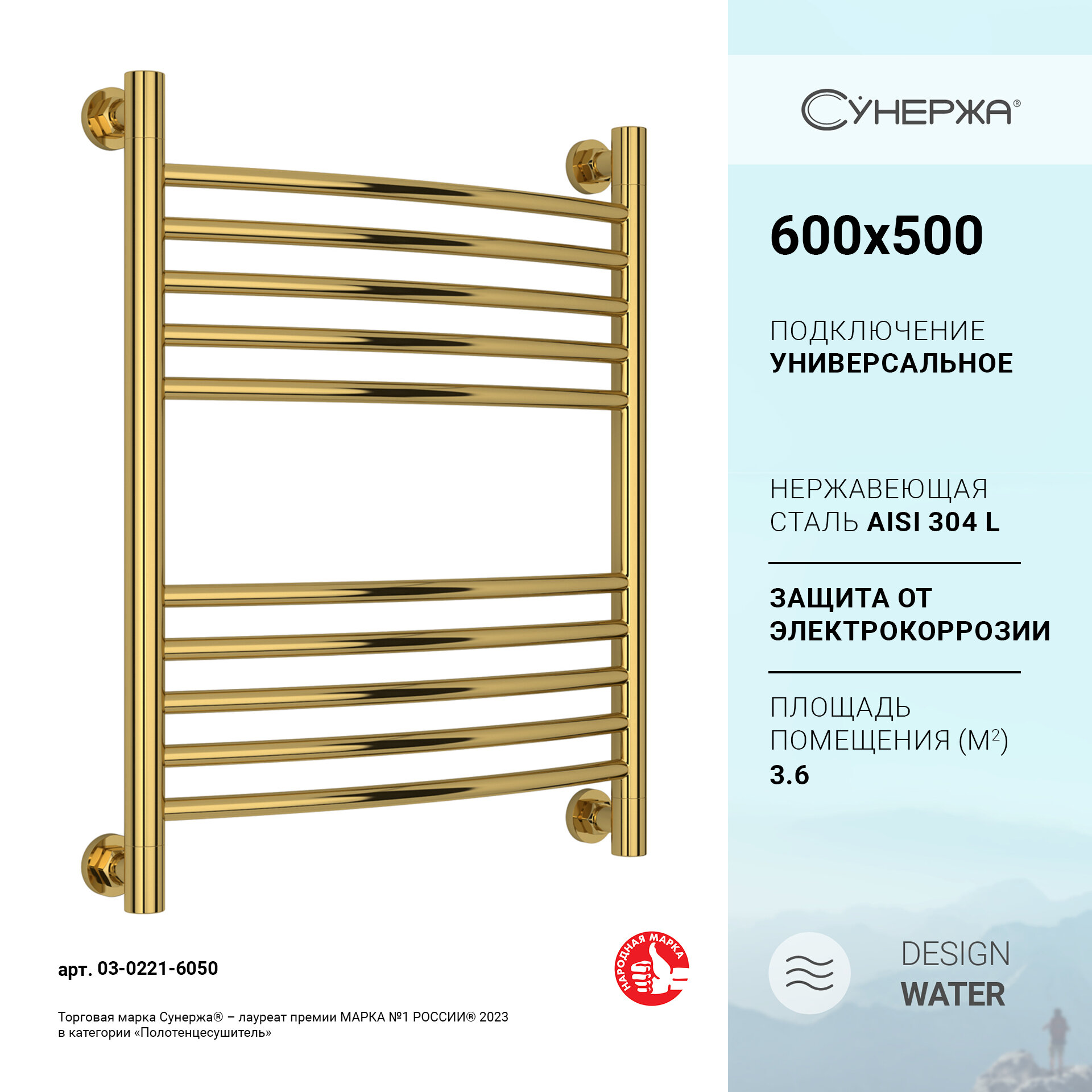 Купить Водяной полотенцесушитель Сунержа Богема+ выгнутая 600x500 золото