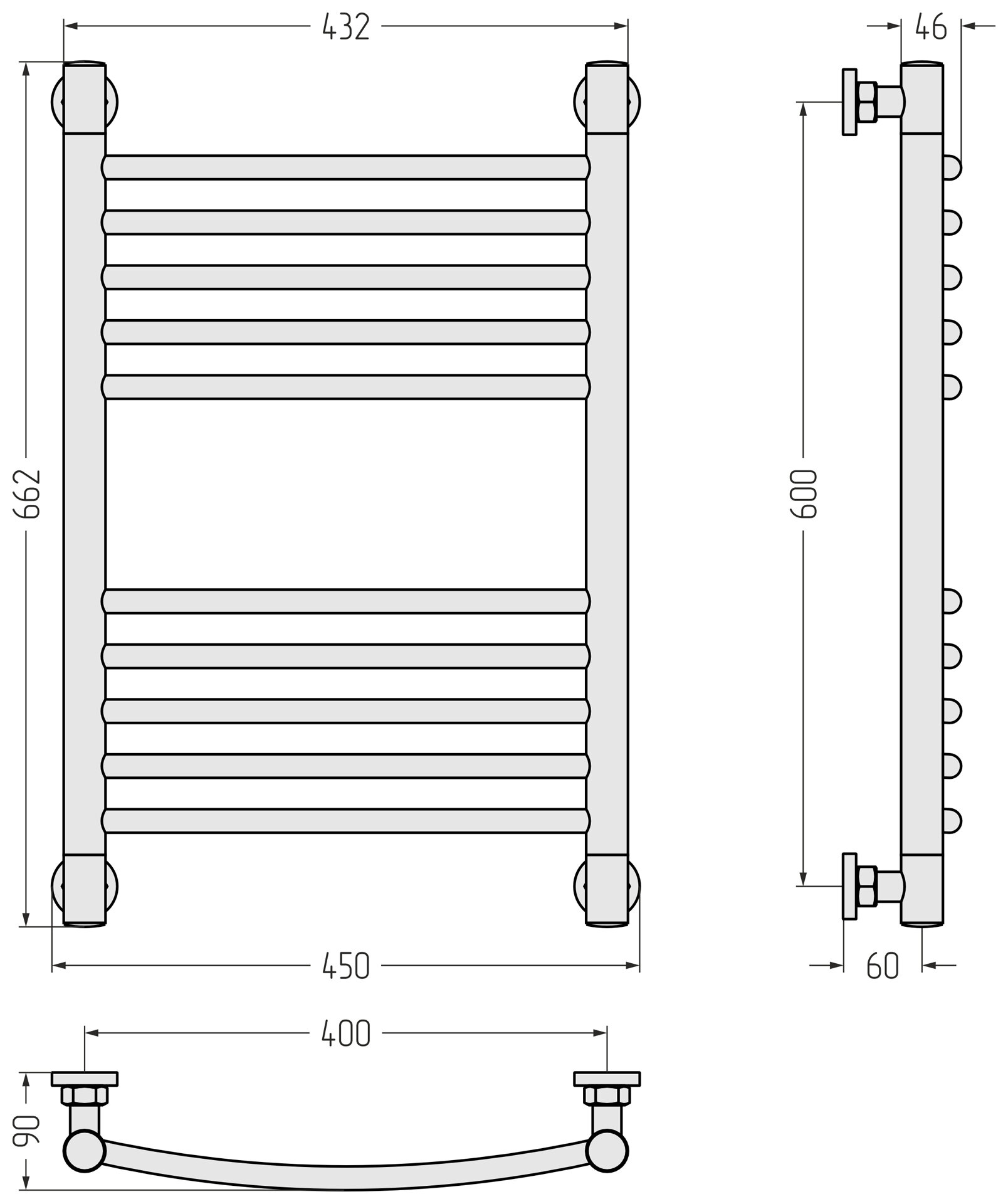 Полотенцесушитель водяной 600x400 перемычка выгнутая сатин Сунержа Богема+ 071-0221-6040