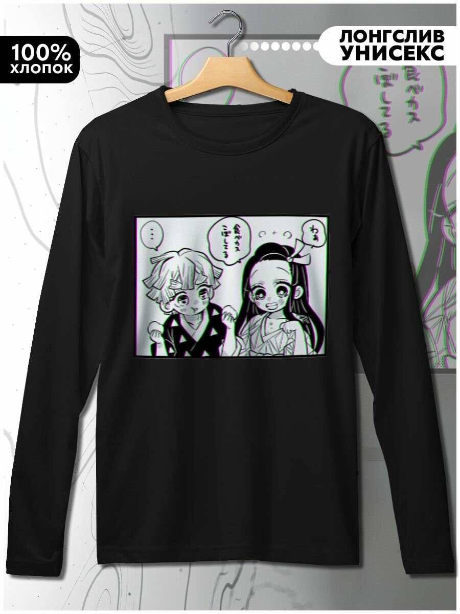 Купить Лонгслив черный Аниме клинок рассекающий демонов (Demon Slayer, Кимэцу но яйба, аниме, фэнтези, Тандзиро, Нэдзуко) - 279 oversize