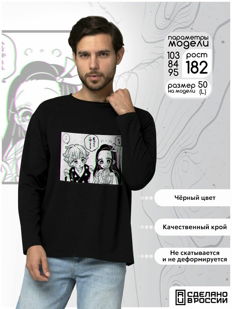 Лонгслив черный Аниме клинок рассекающий демонов (Demon Slayer, Кимэцу но яйба, аниме, фэнтези, Тандзиро, Нэдзуко) - 279 oversize интересное: