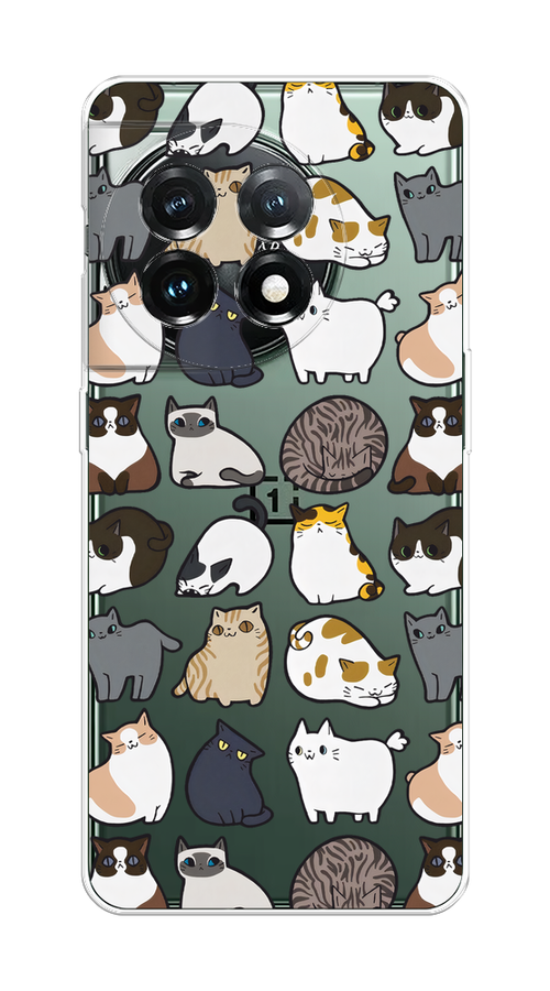 Купить Силиконовый чехол "Милые котики" на OnePlus 11 / Ван Плас 11, прозрачный