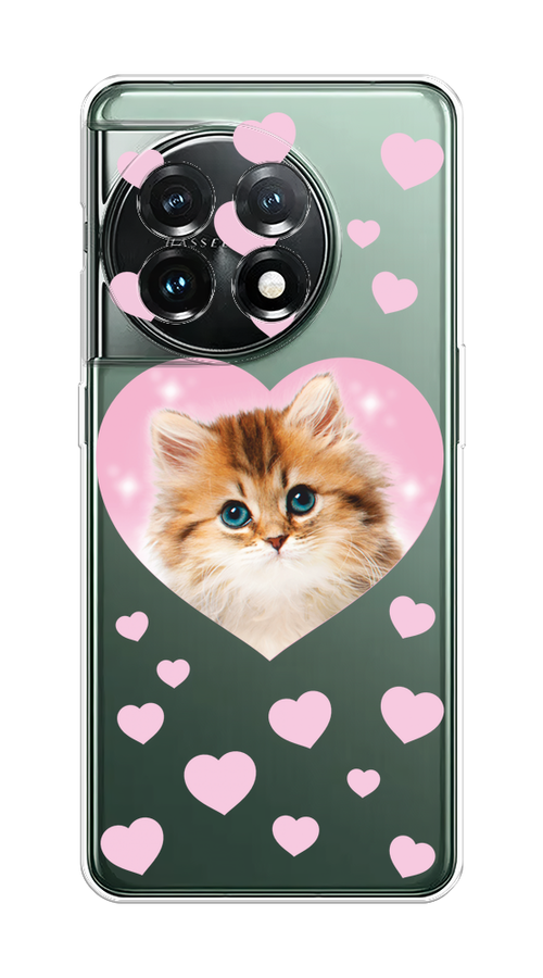 Купить Силиконовый чехол "Котенок в сердце" на OnePlus 11 / Ван Плас 11, прозрачный
