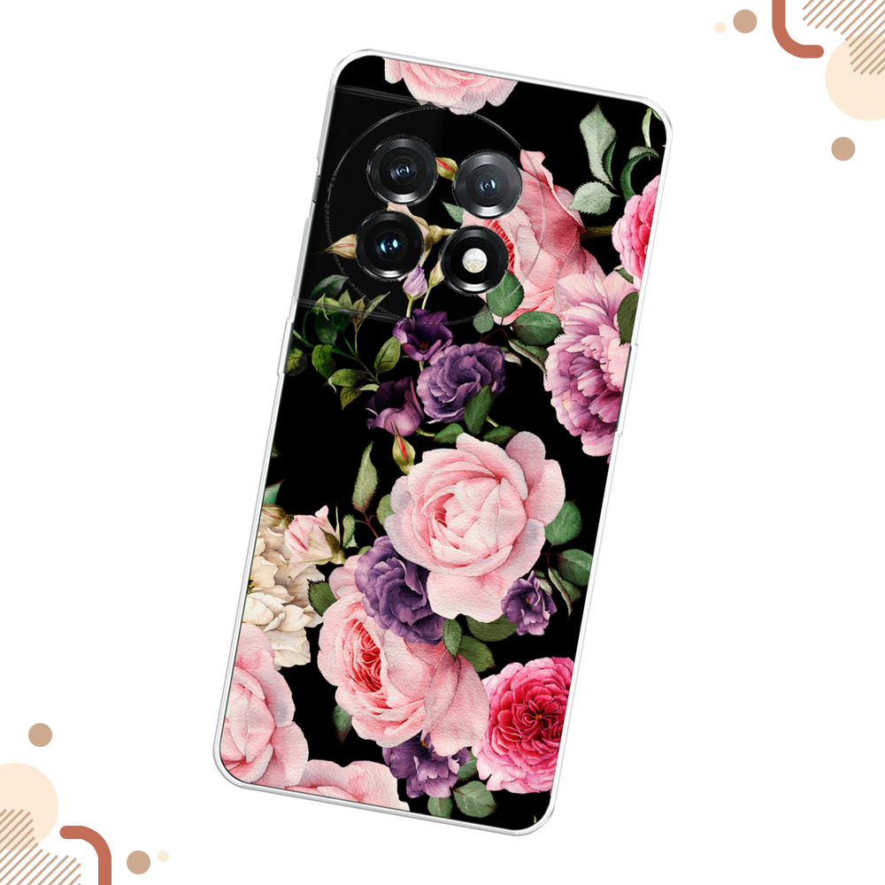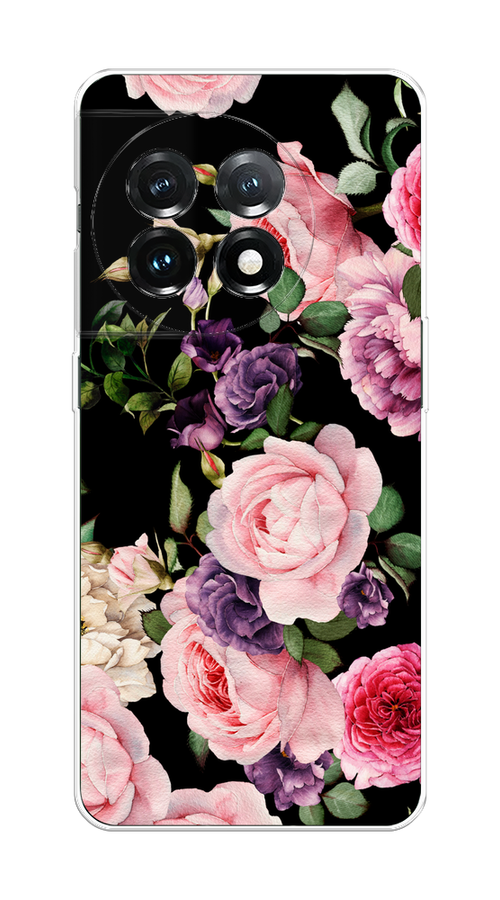 Купить Силиконовый чехол "Пионы на черном" на OnePlus 11 / Ван Плас 11