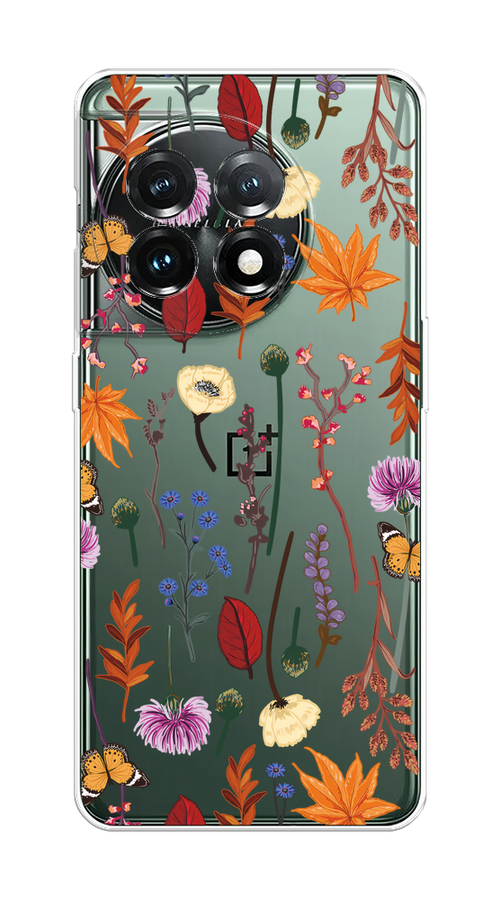 Чехол на OnePlus 11 / Ван Плас 11 с принтом Orange Purple flowers, прозрачный