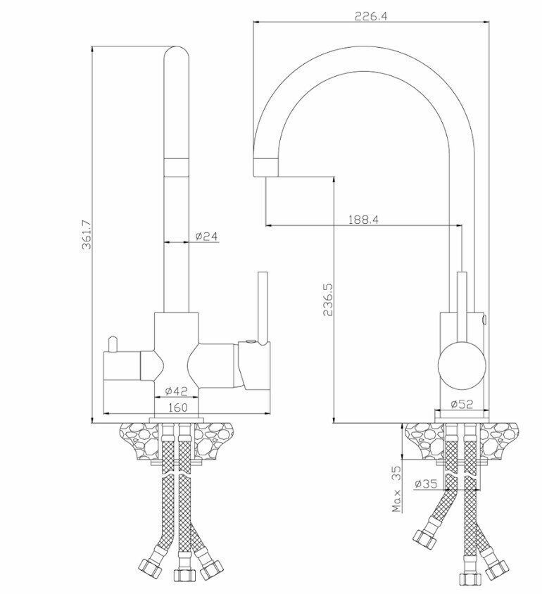 Смеситель одноручный (35мм) для кухни Z35-28 выс.пов.изл. и с подключением к фильтру интересное: