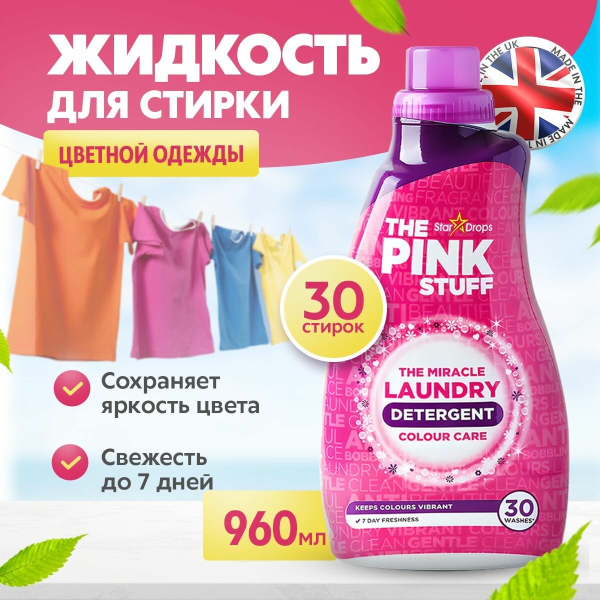 Гель для стирки "The Pink Stuff ", для цветного белья, жидкий порошок для стирки, 960 мл интересное: