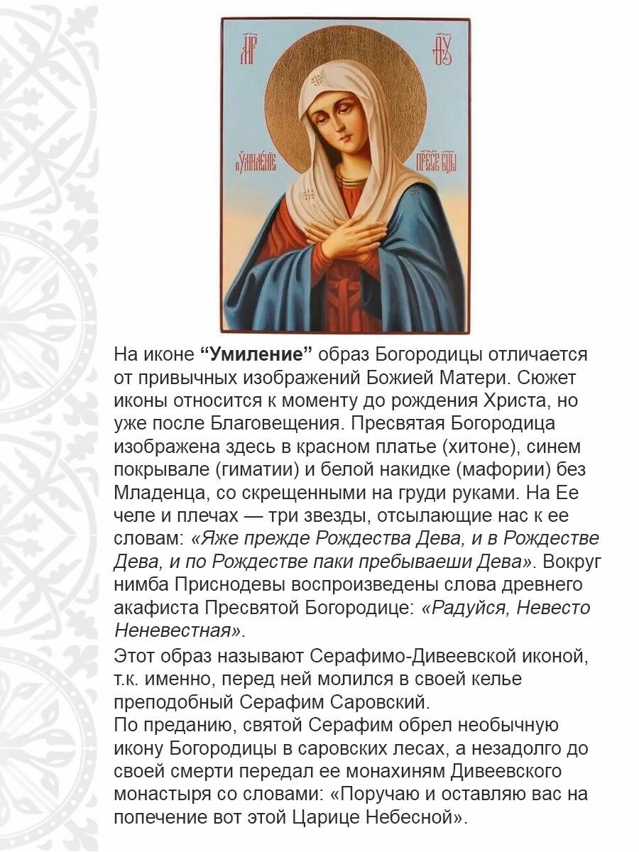 Ниже Вы можете прочитать отзывы на Икона Богородица Умиление Серафимо-Дивеевская дерево 22х30см, ознакомится с подробными характеристиками, посмотреть интересные обзоры и фотографии на Икона Богородица Умиление Серафимо-Дивеевская дерево 22х30см.