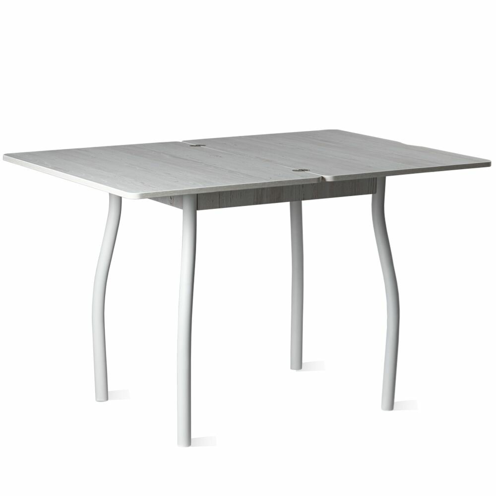 Купить Стол кухонный раскладной дуэт.4 (Сосна винтерберг - белый муар). Стол для кухни обеденный на металлических ножках (№1.1)