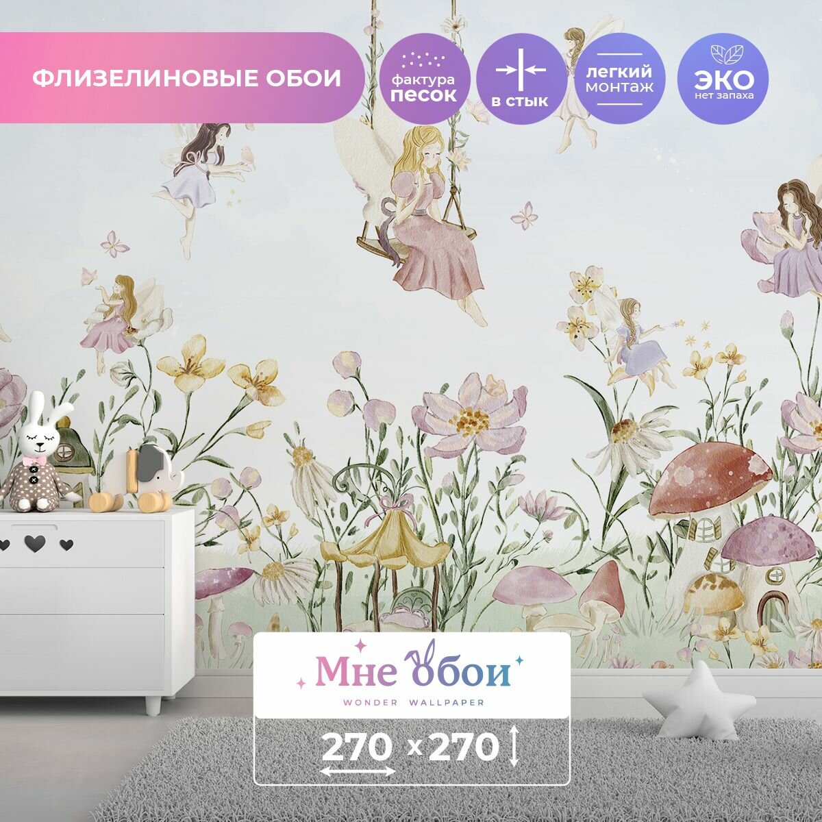 Купить Детские флизелиновые фотообои "Мир фей 3 " 270х270 (ШхВ)