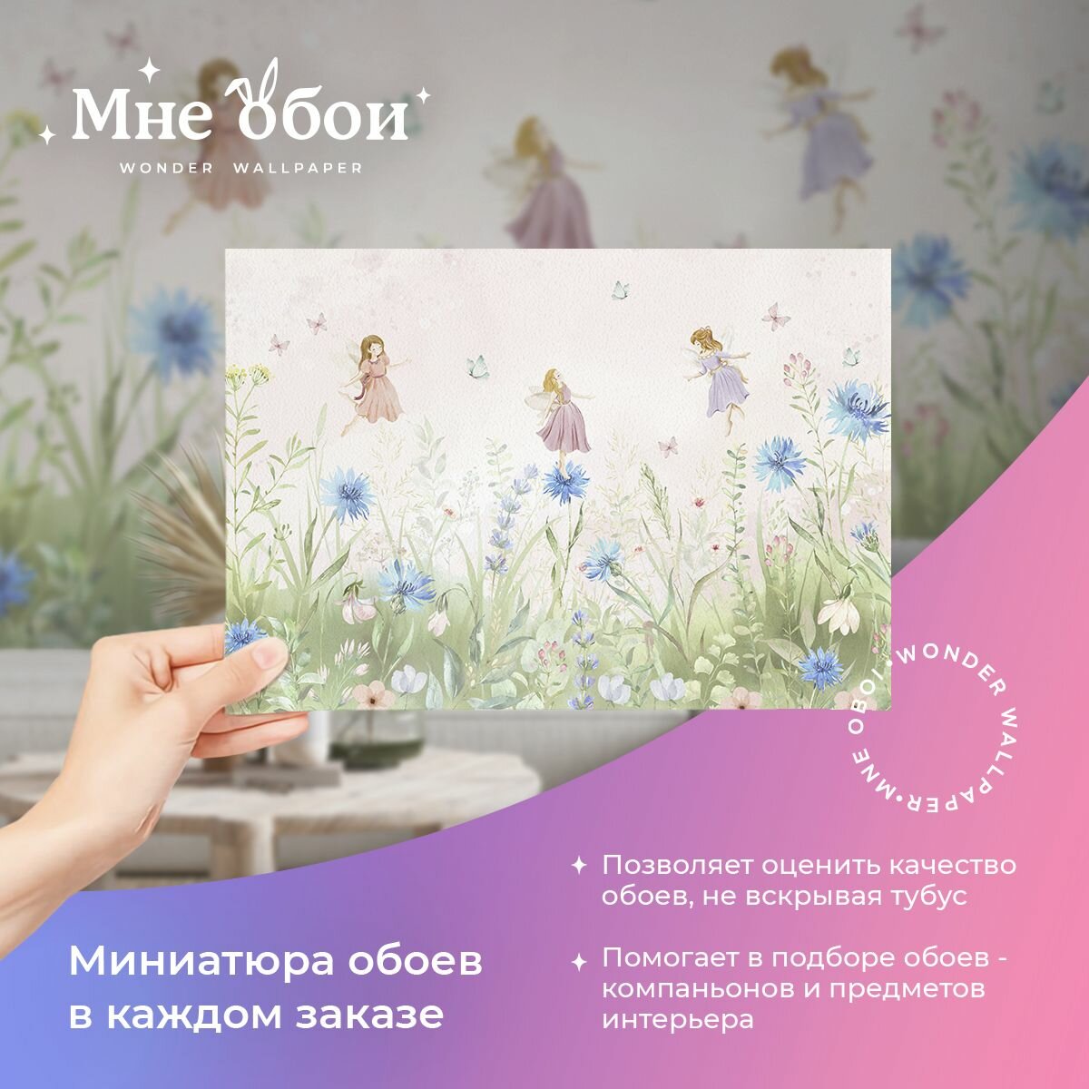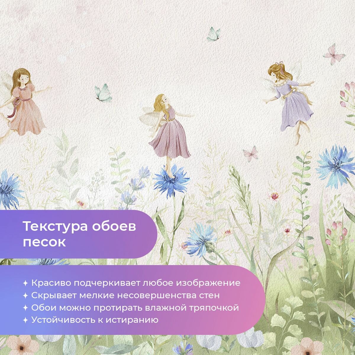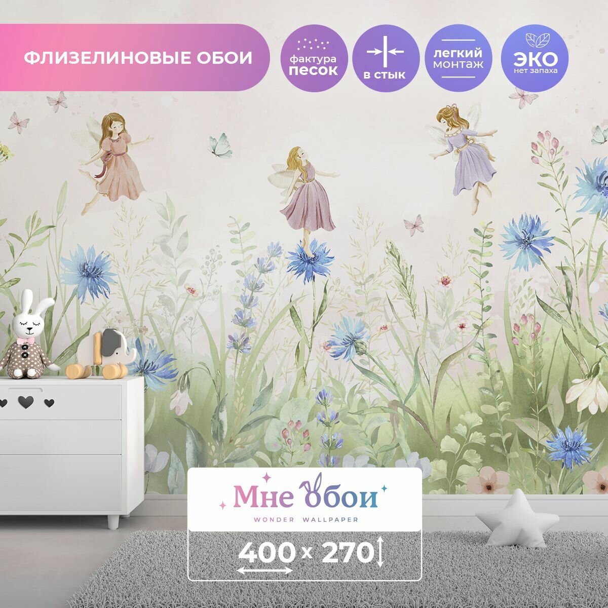 Детские флизелиновые фотообои "Феи на васильках " 400х270 (ШхВ) интересное: