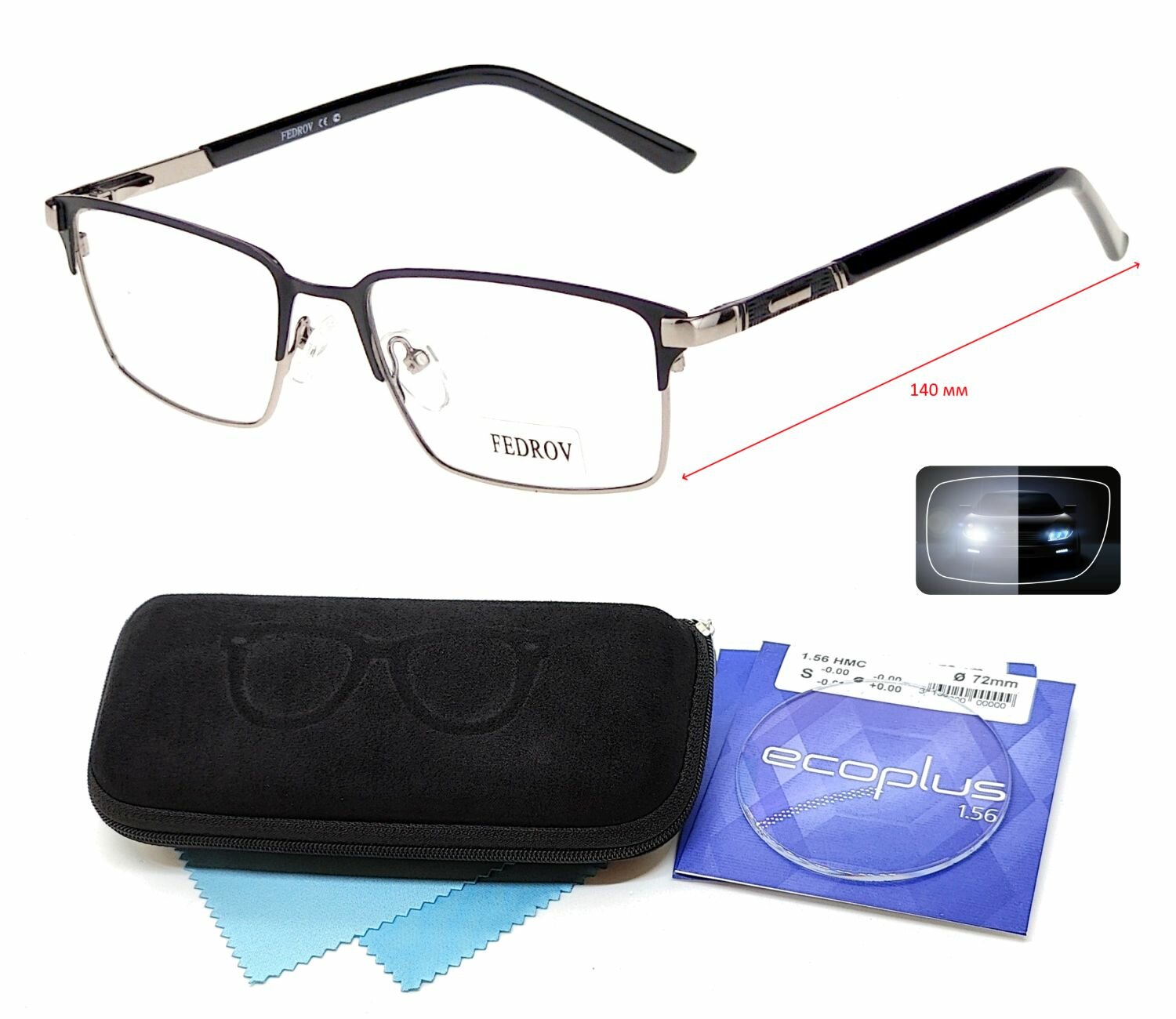 Очки с футляром-змейка FEDROV мод. 31448 Цвет 2 с линзами ECOPLUS 1.56 HMC +6.00 РЦ 60-62 интересное: