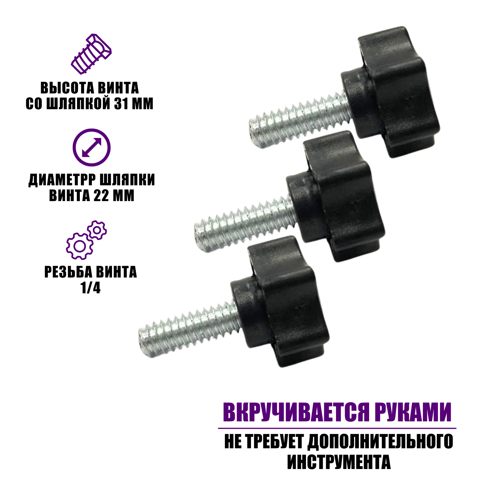 Винт барашек, длина резьбы 17 мм, резьба 1/4, 3 шт интересное: