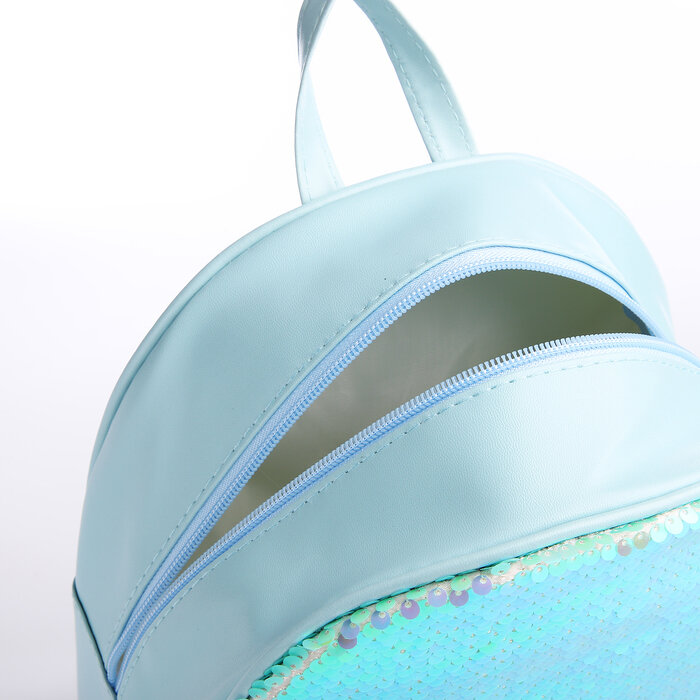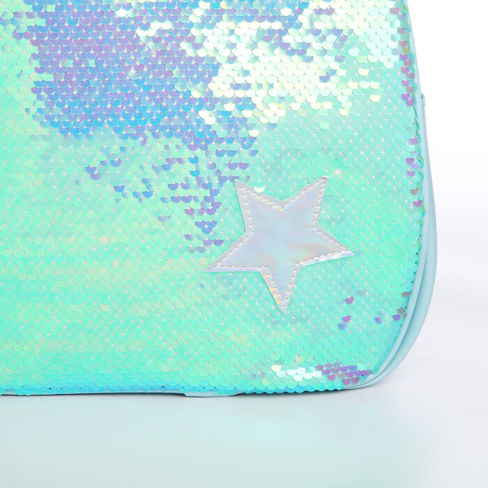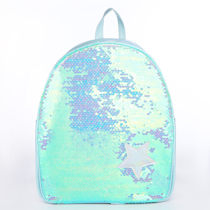 Рюкзак детский для девочки с пайетками «Звёздочка», отдел на молнии, цвет голубой-зелёный