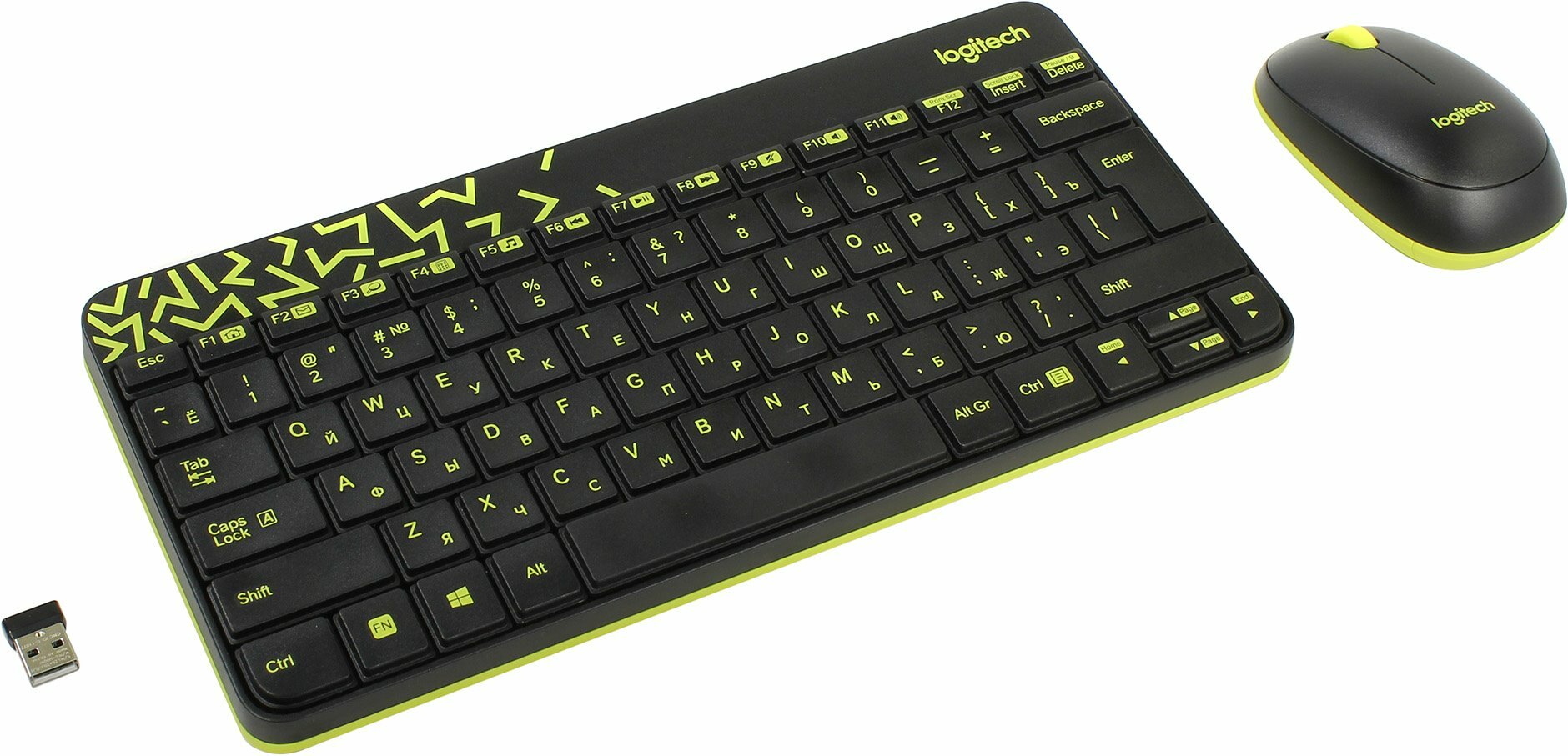 Комплект клавиатура + мышь Logitech MK240 Nano, black/yellow, английская/русская