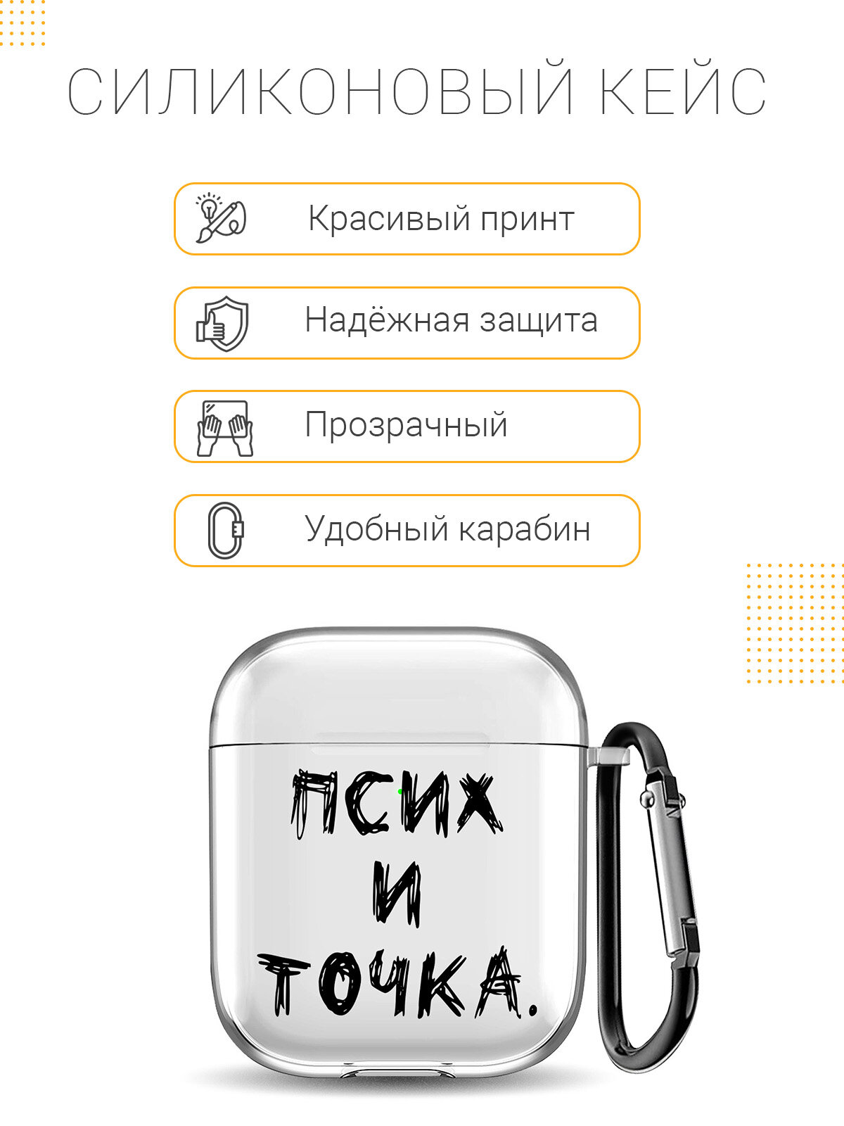 СохранитьПрозрачный чехол для наушников Apple Airpods 1 / 2 силиконовый с 3D принтом "Psycho" интересное: