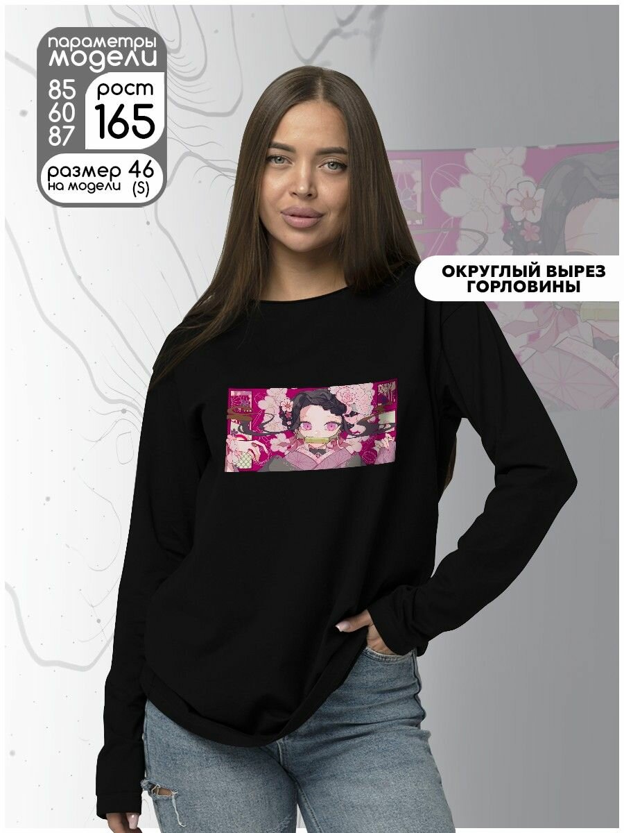 Купить Лонгслив черный Аниме клинок рассекающий демонов (Demon Slayer, Кимэцу но яйба, аниме, фэнтези, Тандзиро, Нэдзуко) - 275 oversize