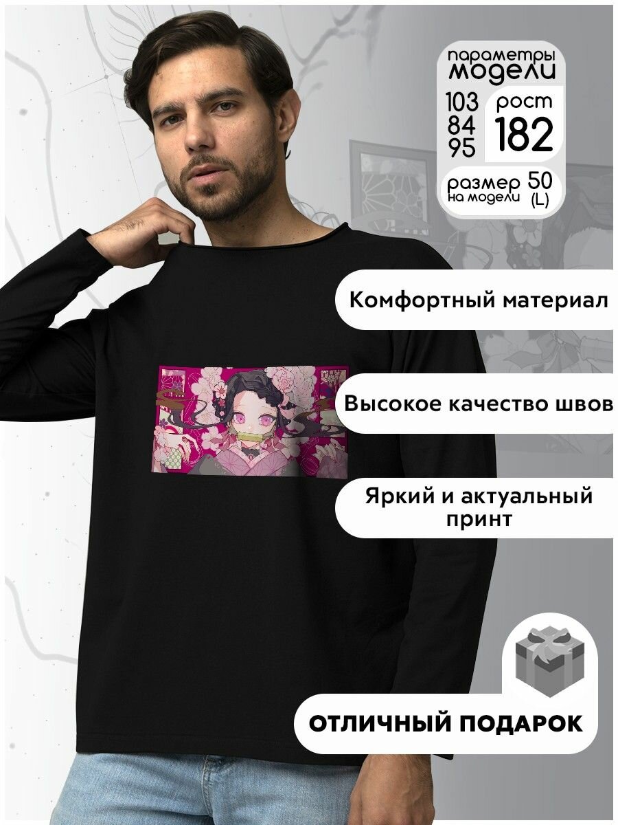 Лонгслив черный Аниме клинок рассекающий демонов (Demon Slayer, Кимэцу но яйба, аниме, фэнтези, Тандзиро, Нэдзуко) - 275 oversize интересное: