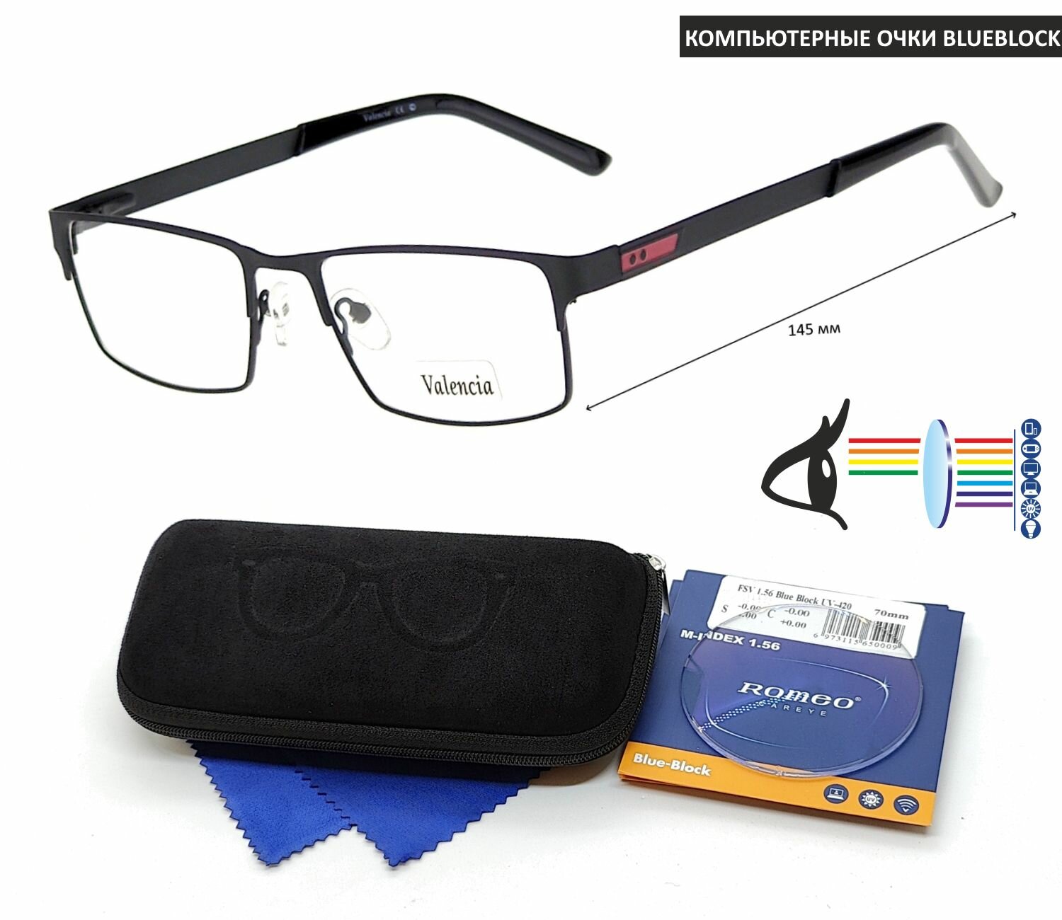 Компьютерные очки с футляром-змейка VALENCIA мод. 31422 Цвет 2 с линзами ROMEO 1.56 Blue Block +2.50 РЦ 62-64 интересное: