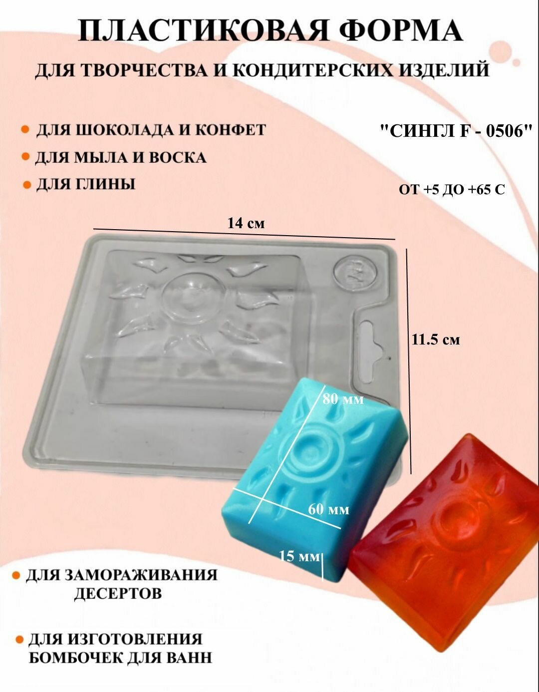 Пластиковая форма Сингл F-0506 Б0264, для творчества, для шоколада и желе, молд, для свечей, для мыла, для льда, форма для десертов, для мыла и глины интересное: