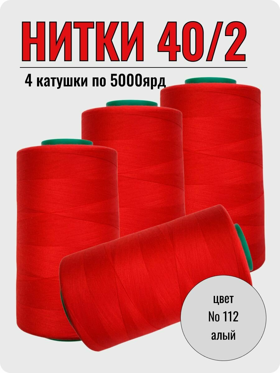 Нитки швейные 40/2 полиэстер 5000 ярд цвет 112 алые 4шт интересное: