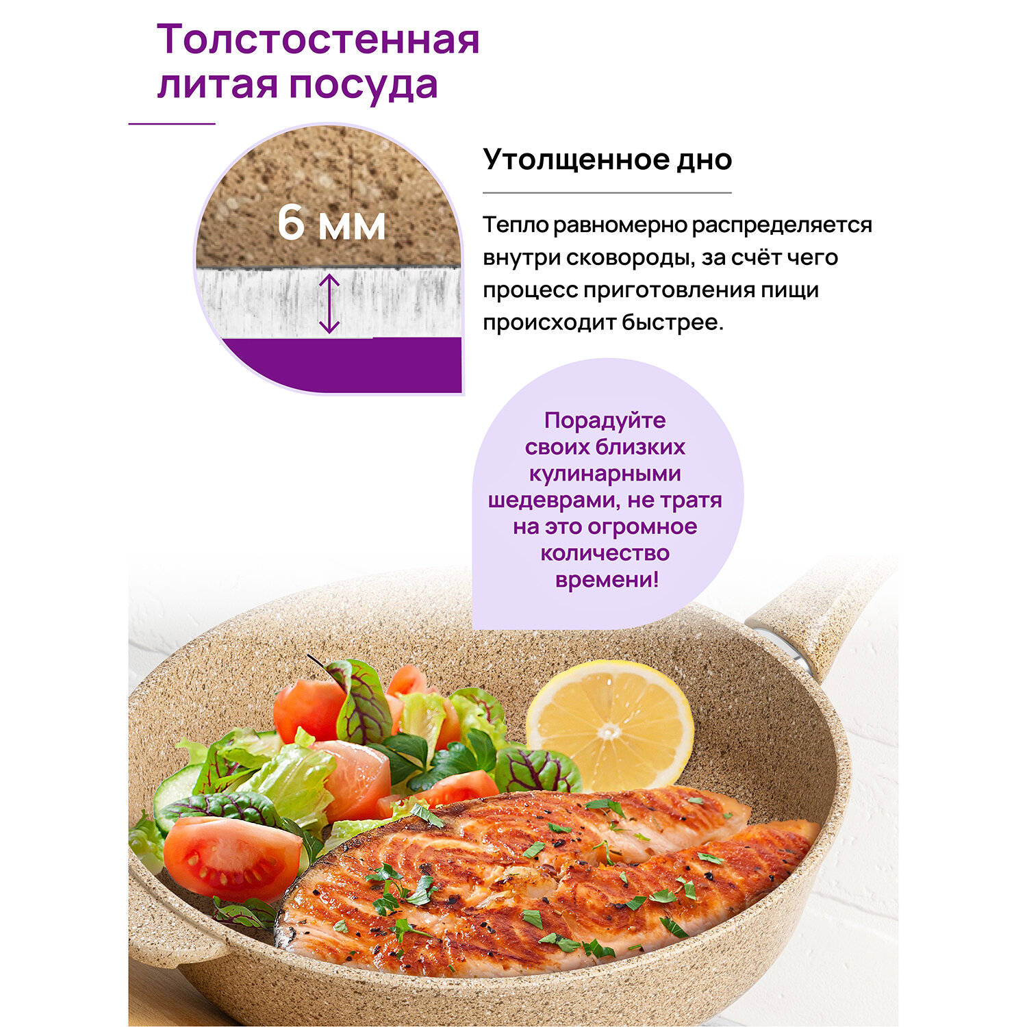 Сковорода глубокая 20 см Elan Gallery гармония вкуса Медовый гранит, с несъёмной ручкой интересное: