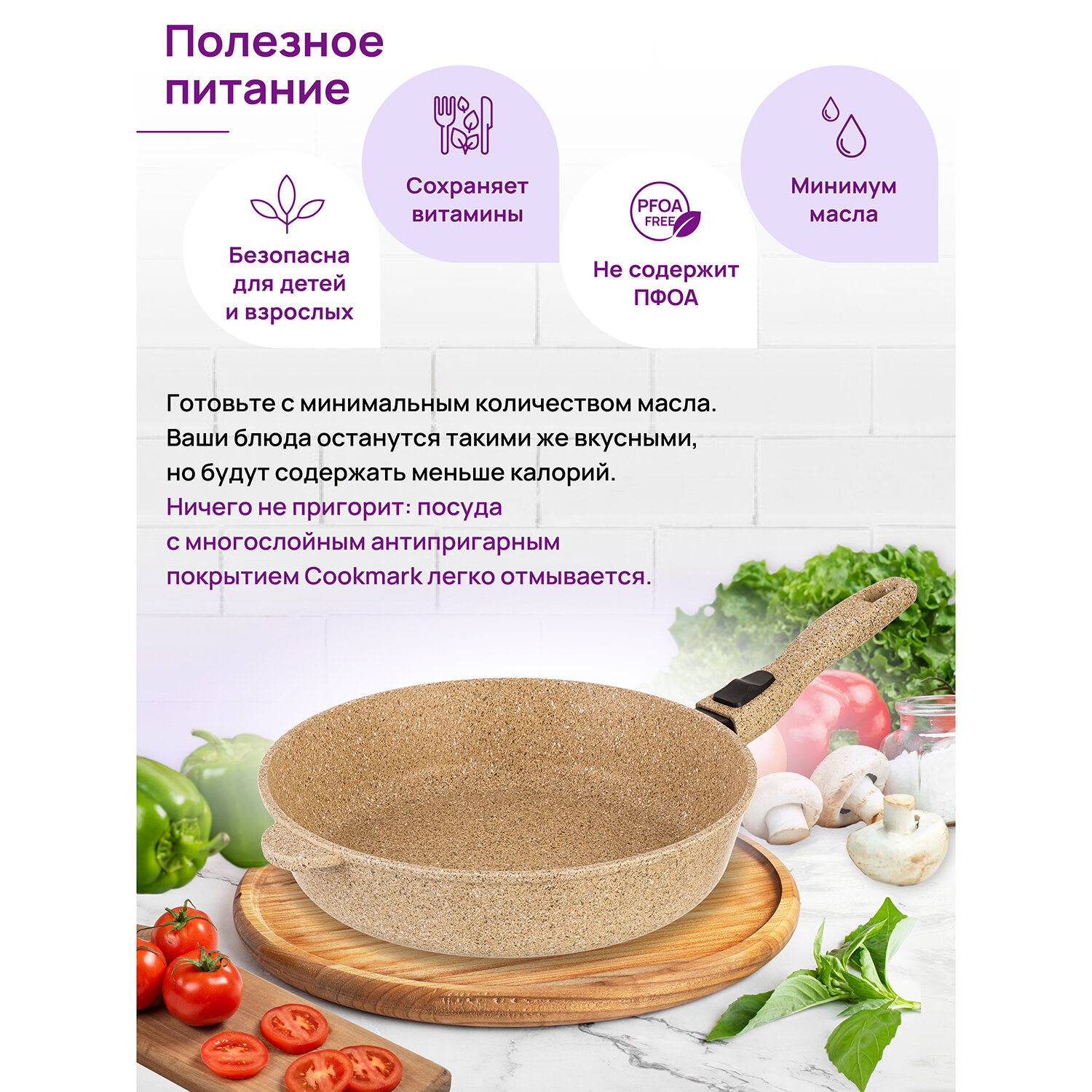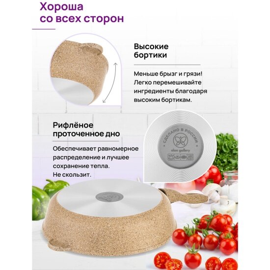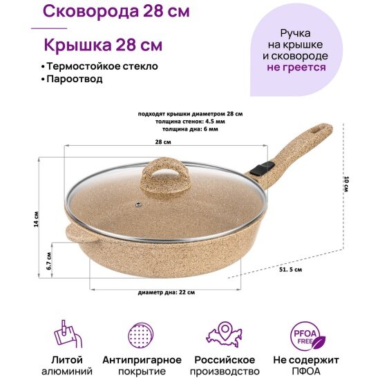 Сковорода глубокая 28 см Elan Gallery гармония вкуса Медовый гранит с крышкой D28, со съёмной ручкой интересное:
