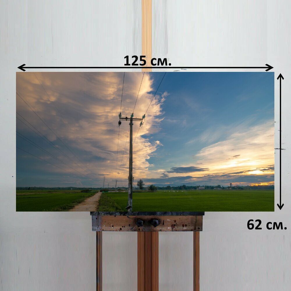 Картина на ОСП 125х62 см. "Поле, небо, облака" горизонтальная, для интерьера, с креплениями интересное: