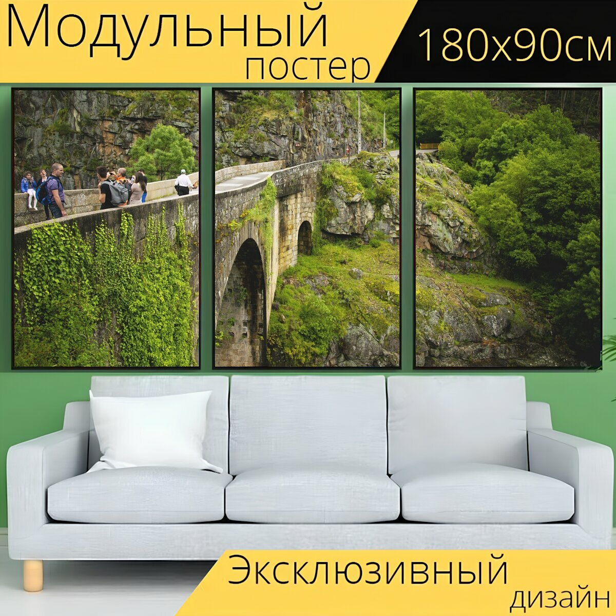 Купить Модульный постер "Мост, гора, зелень" 180 x 90 см. для интерьера