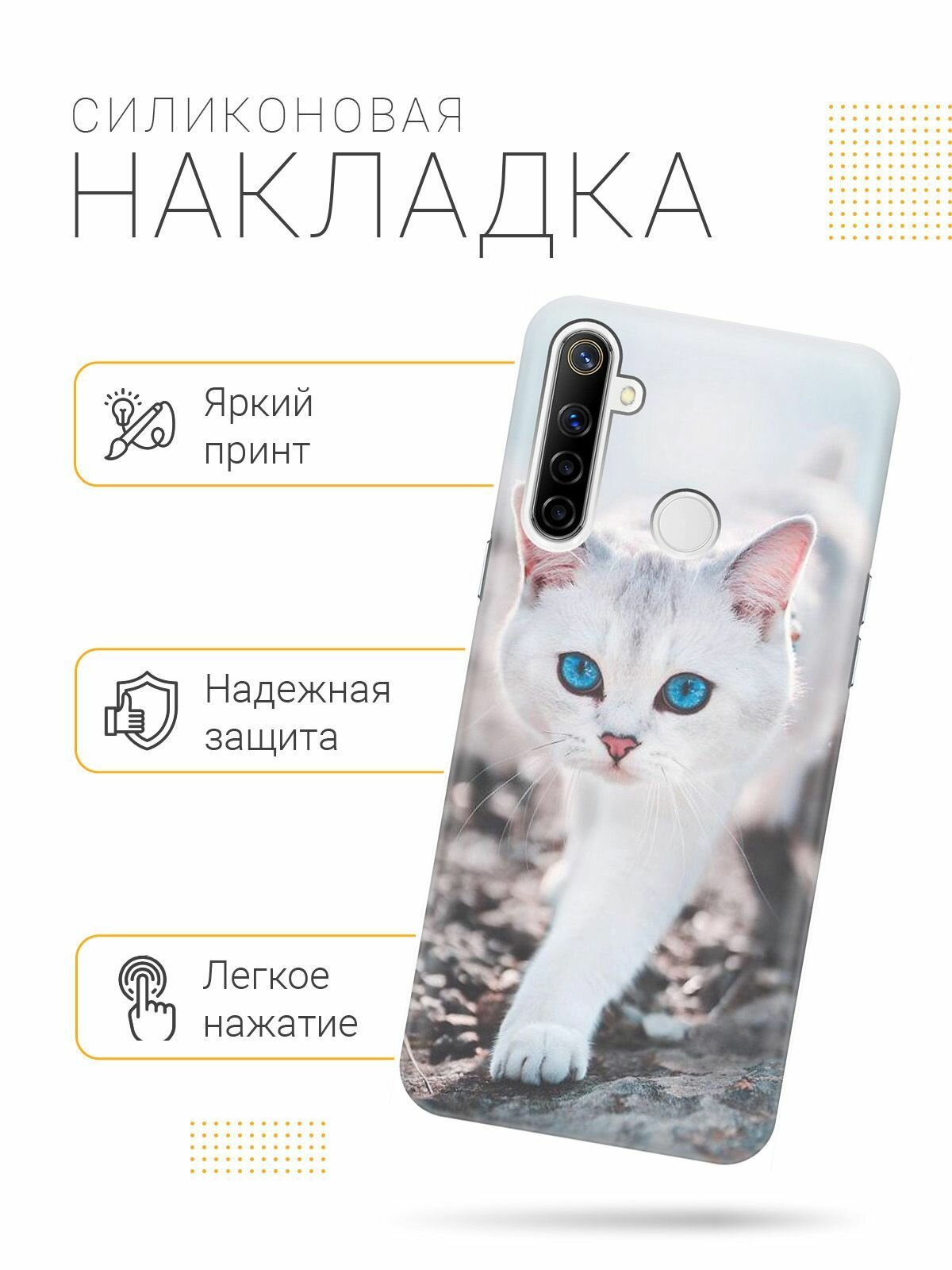 Купить Ультратонкий силиконовый чехол-накладка для realme 5, 6i, C3 с принтом "Голубоглазый кот"