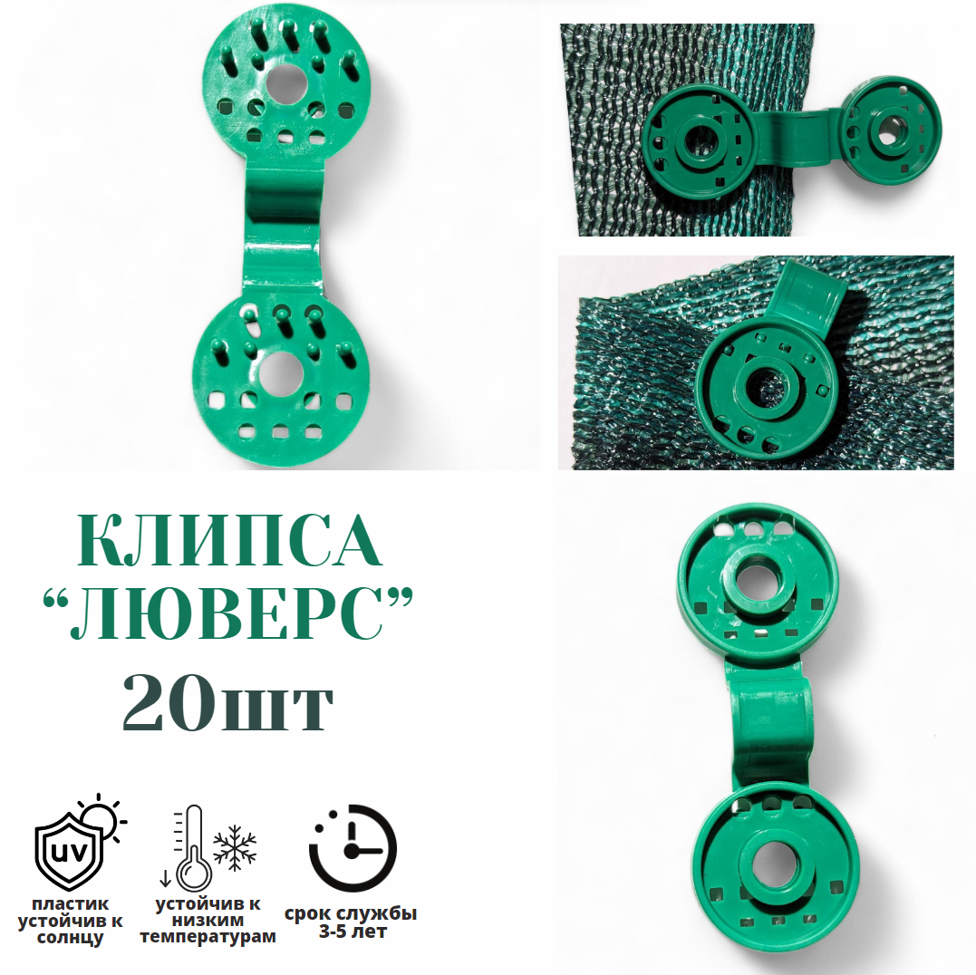 Клипсы, крепеж для затеняющей сетки "Люверс", цвет зеленый, 20 штук. интересное: