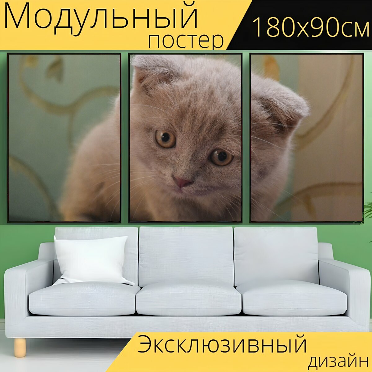 Модульный постер "Кошка, китти, котенок" 180 x 90 см. для интерьера интересное: