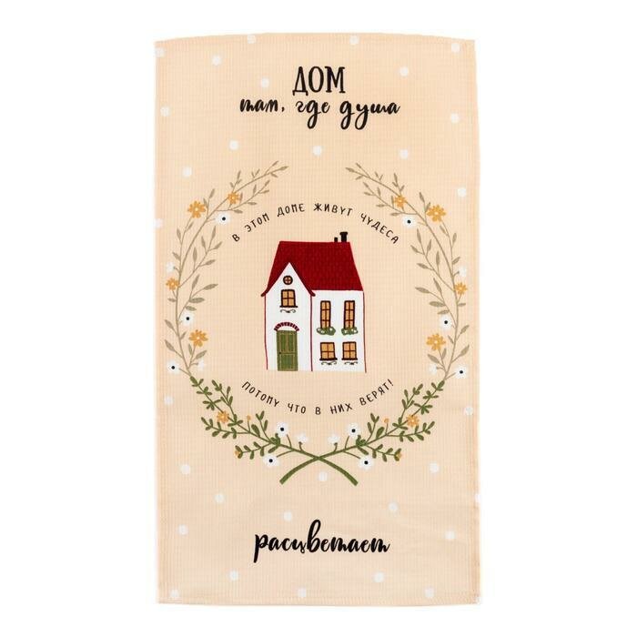 Купить Доляна Полотенце кухонное Доляна «Дом там, где душа» 35х60 см, 100% хлопок, 160г/м2