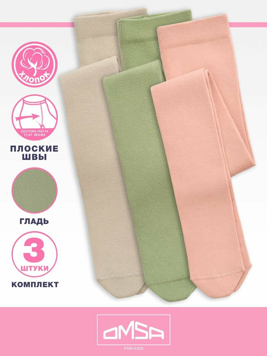 Колготки детские Omsa OMSA kids Collant 11С02-3шт, цвет Latte/Oliva/RosaA, размер 92-98