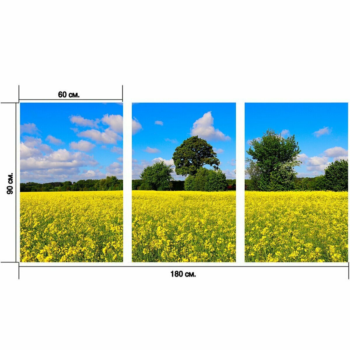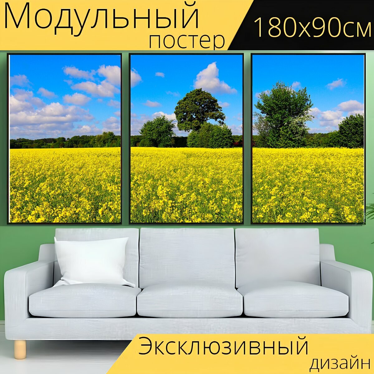 Модульный постер "Рапс, поле, природа" 180 x 90 см. для интерьера интересное: