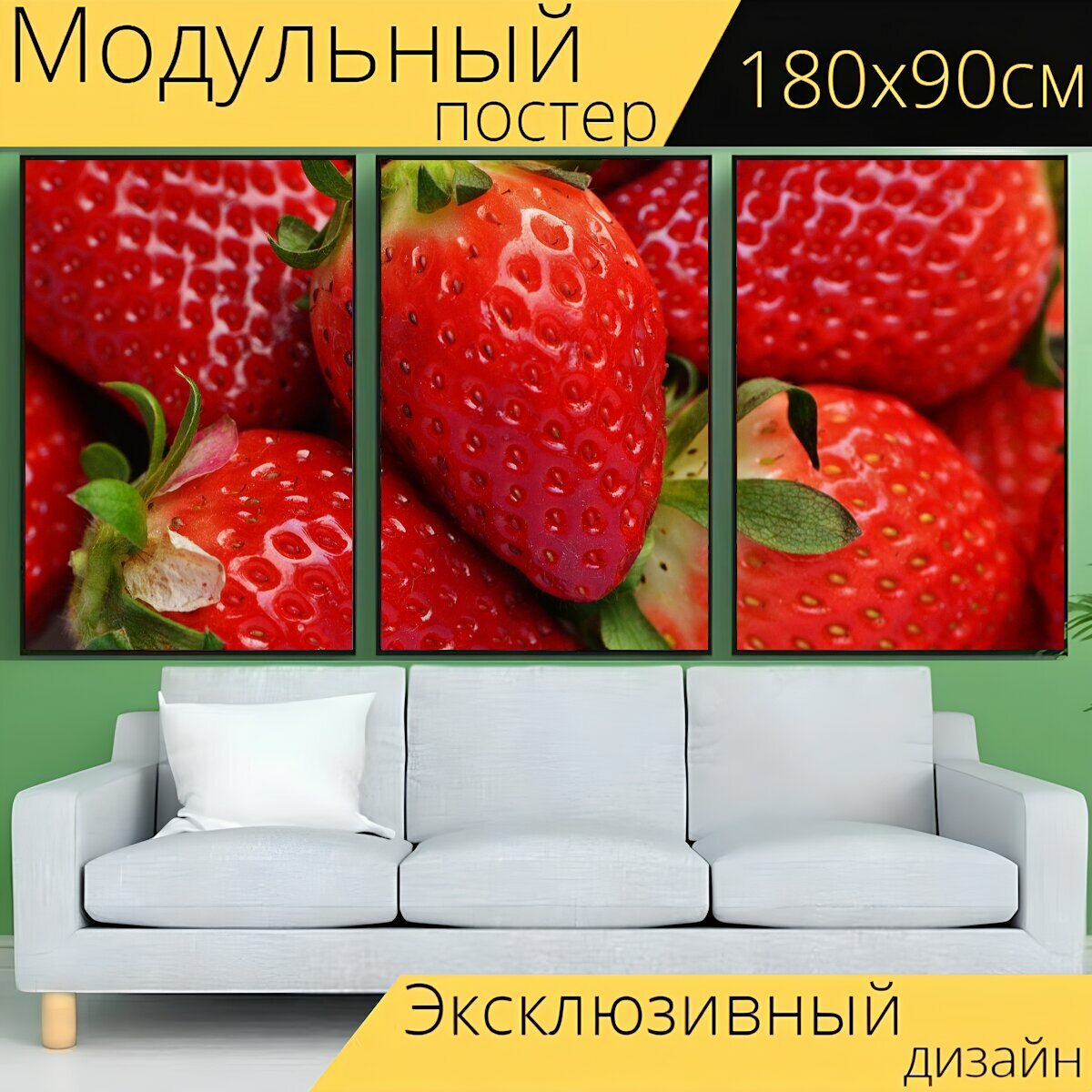 Модульный постер "Клубника, фрукты, закрывать" 180 x 90 см. для интерьера интересное: