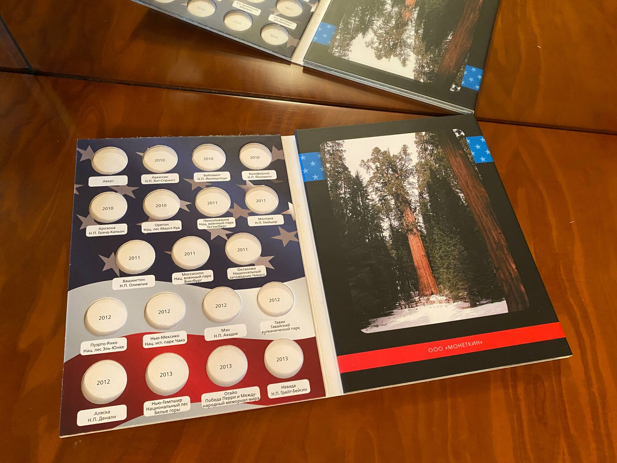 Альбом для монет США 25 центов "Парки" от компании "Монеткин" интересное: