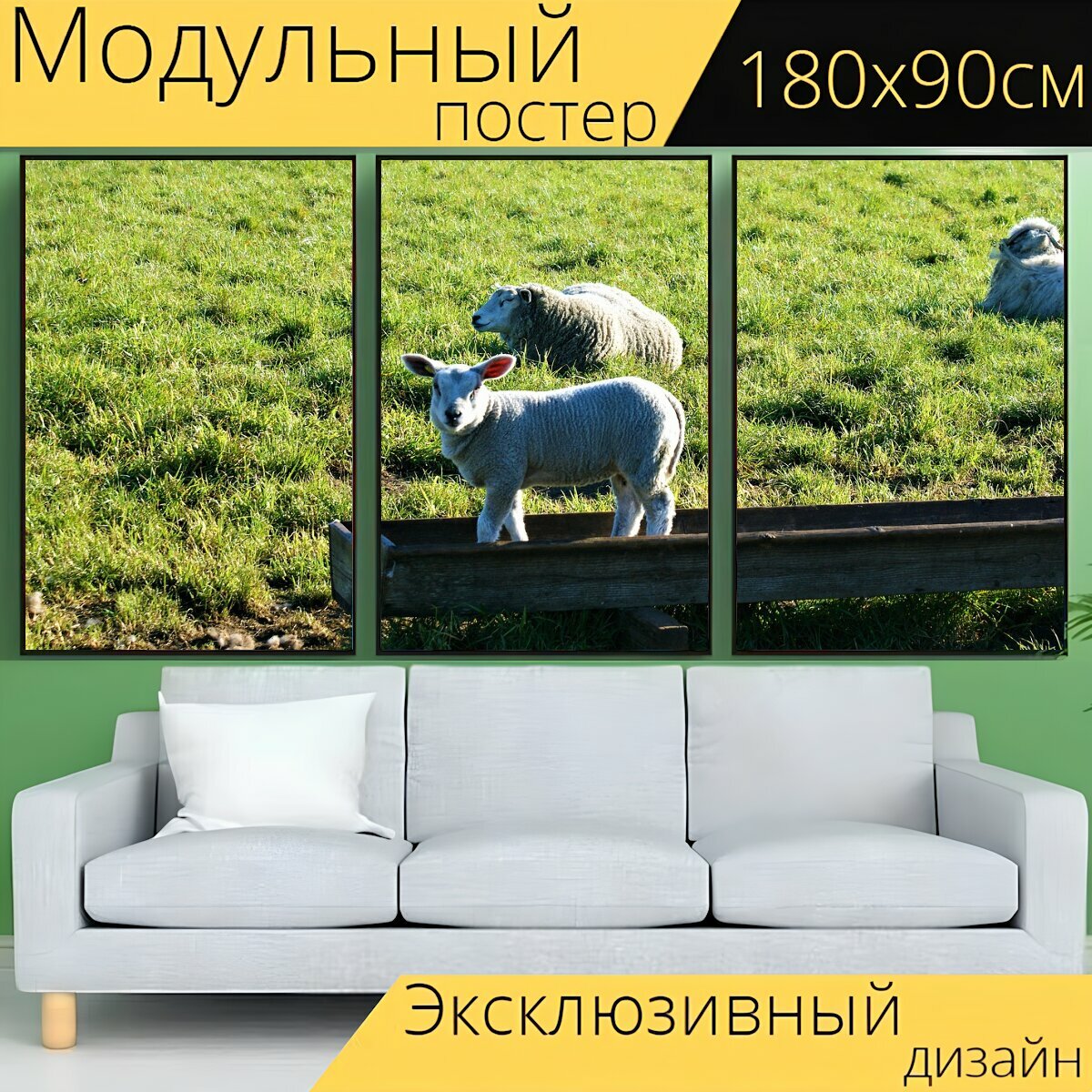 Модульный постер "Агнец, деревенский, пастбище" 180 x 90 см. для интерьера интересное: