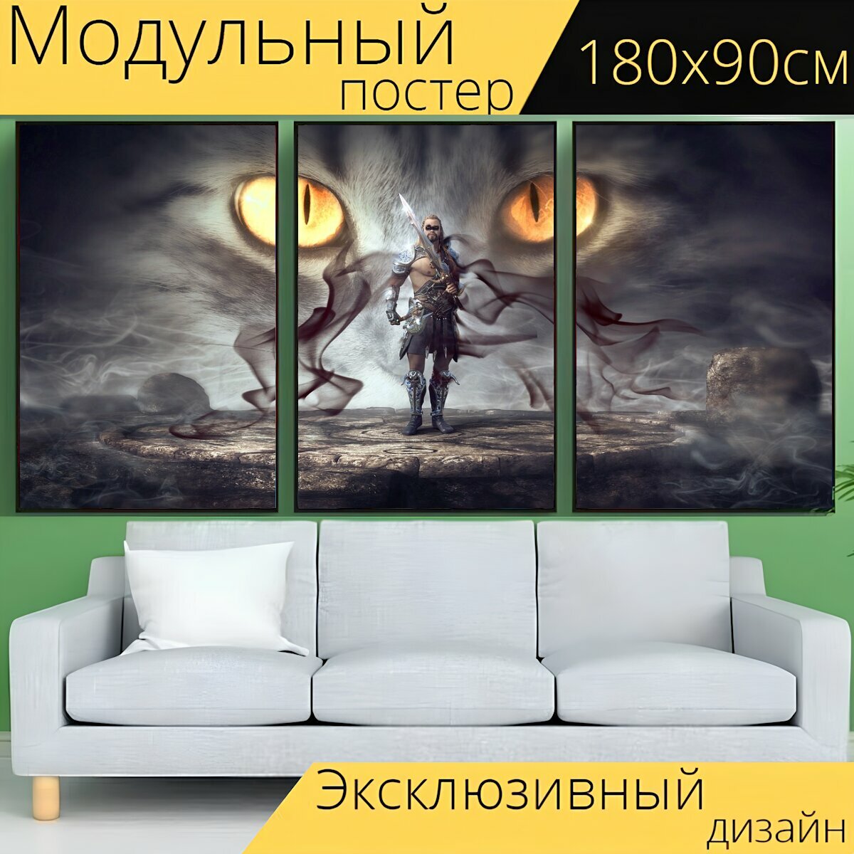 Модульный постер "Фантазия, воин, мистический" 180 x 90 см. для интерьера интересное: