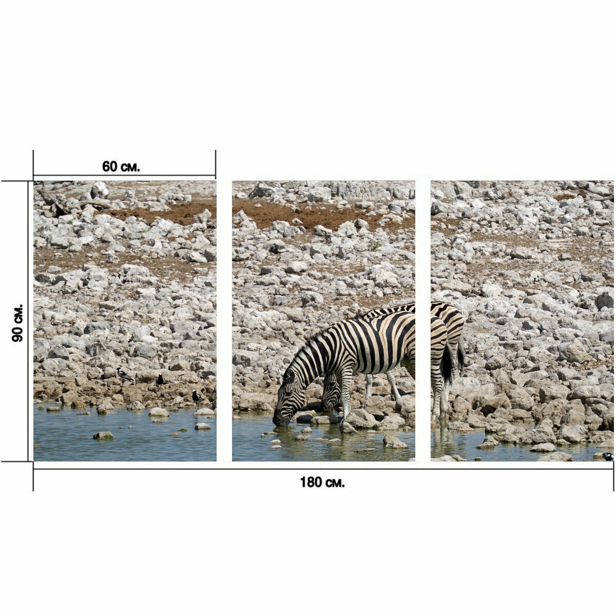 Купить Модульный постер "Намибия, зебра, этоша" 180 x 90 см. для интерьера