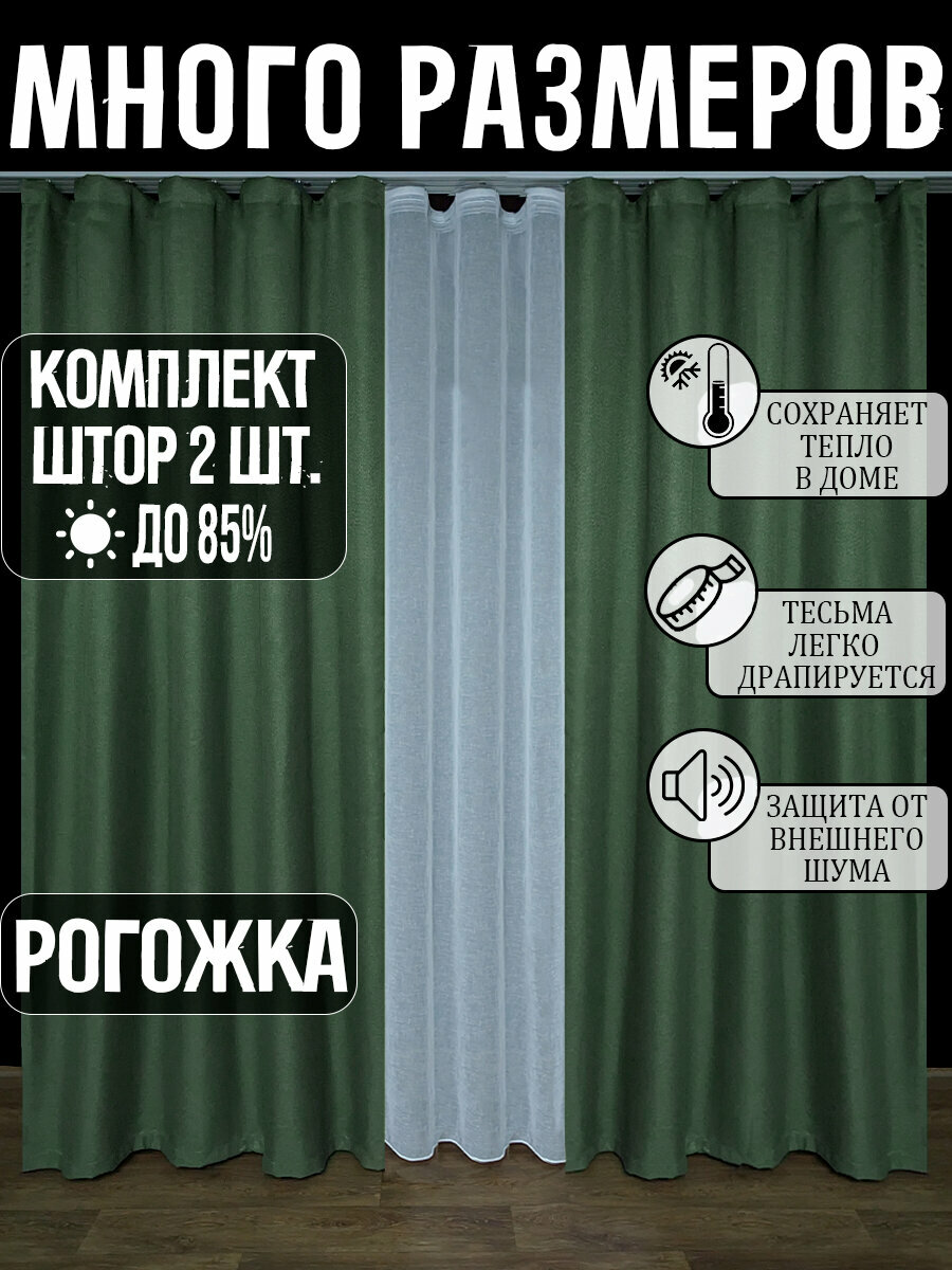 Купить Готовый комплект плотных интерьерных штор(портьер) рогожка без рисунка (2 шт., каждая штора 200x170 см) со шторной лентой
