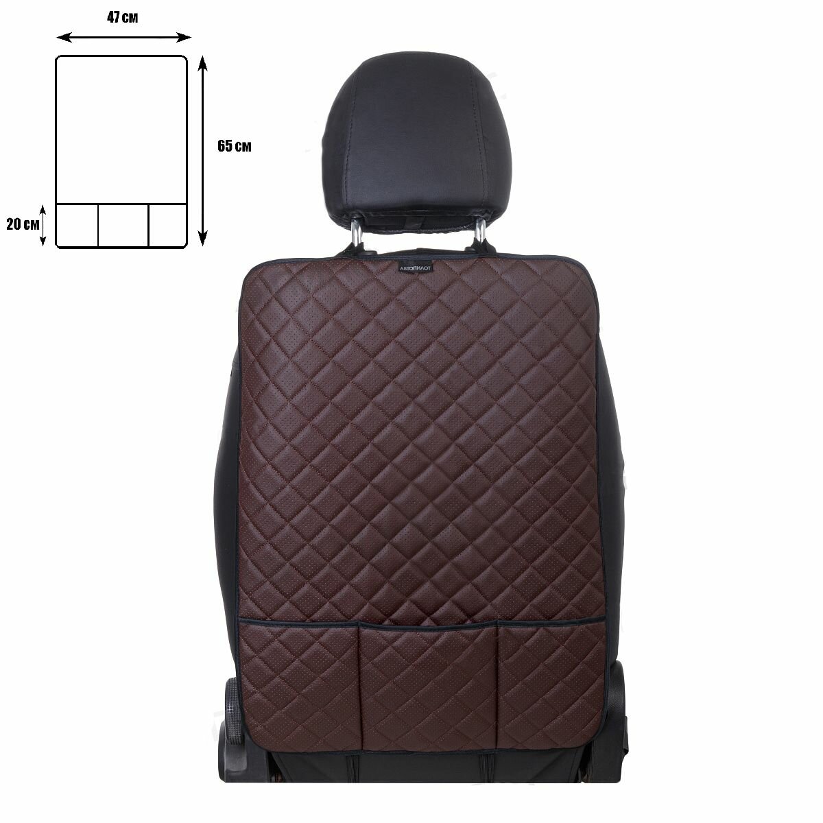 Накидка защитная на спинку автомобильного сиденья (органайзер) на Хендай Акцент (1999 - 2012) хэтчбек 3 двери / Hyundai Accent, Экокожа (ромб), Шоколадный интересное: