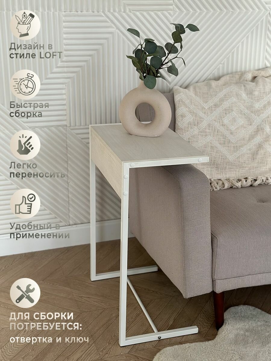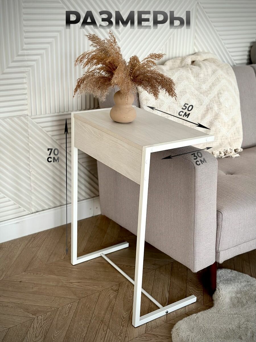 Столик журнальный приставной прикроватный сонома белый