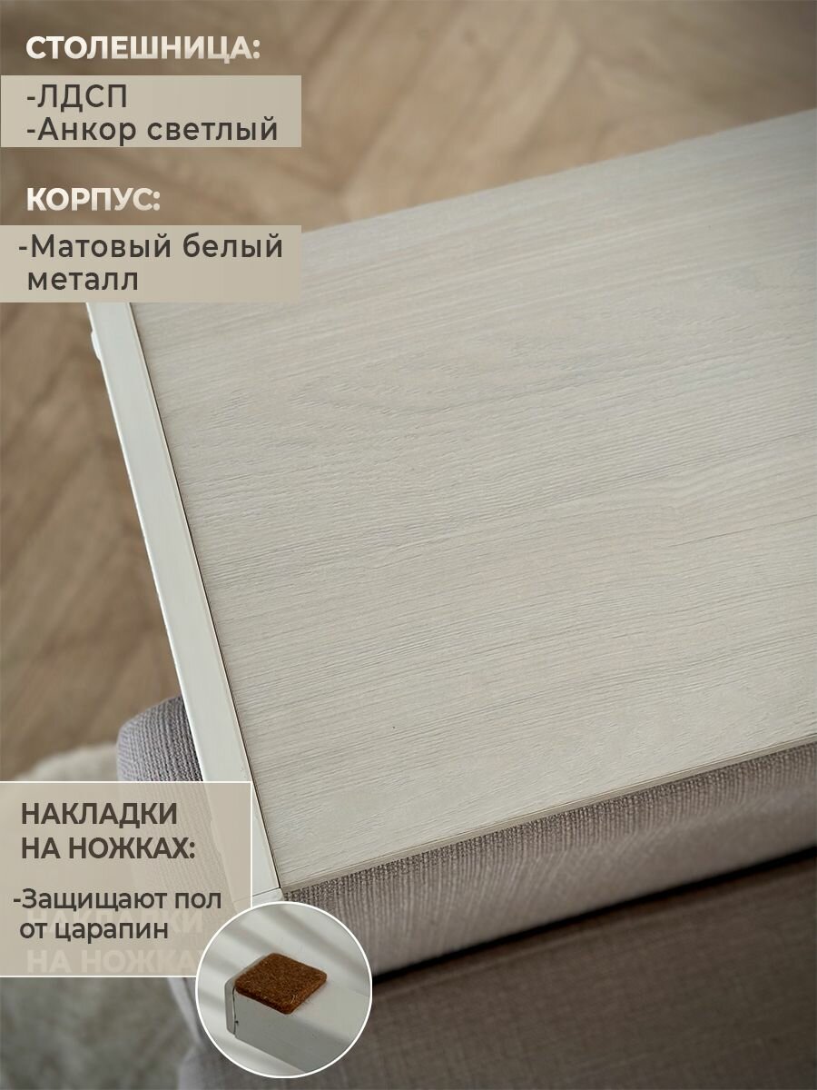 Столик журнальный приставной прикроватный анкор белый