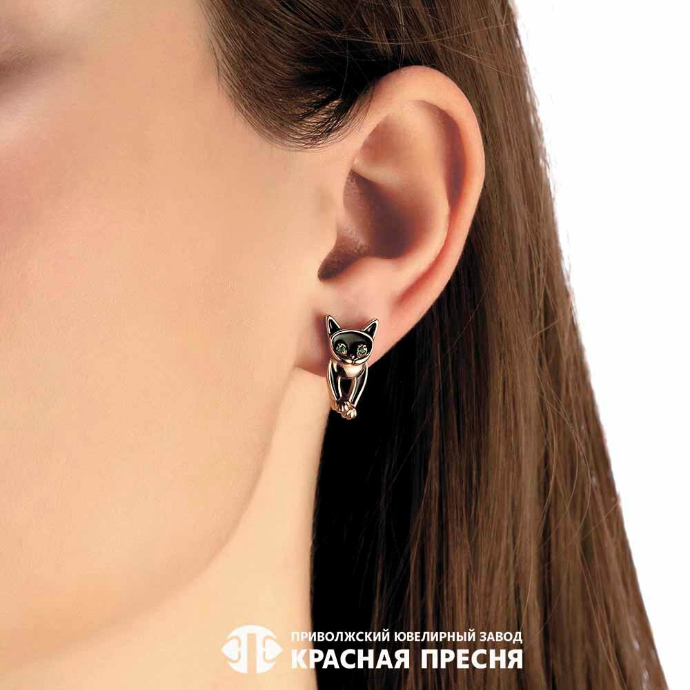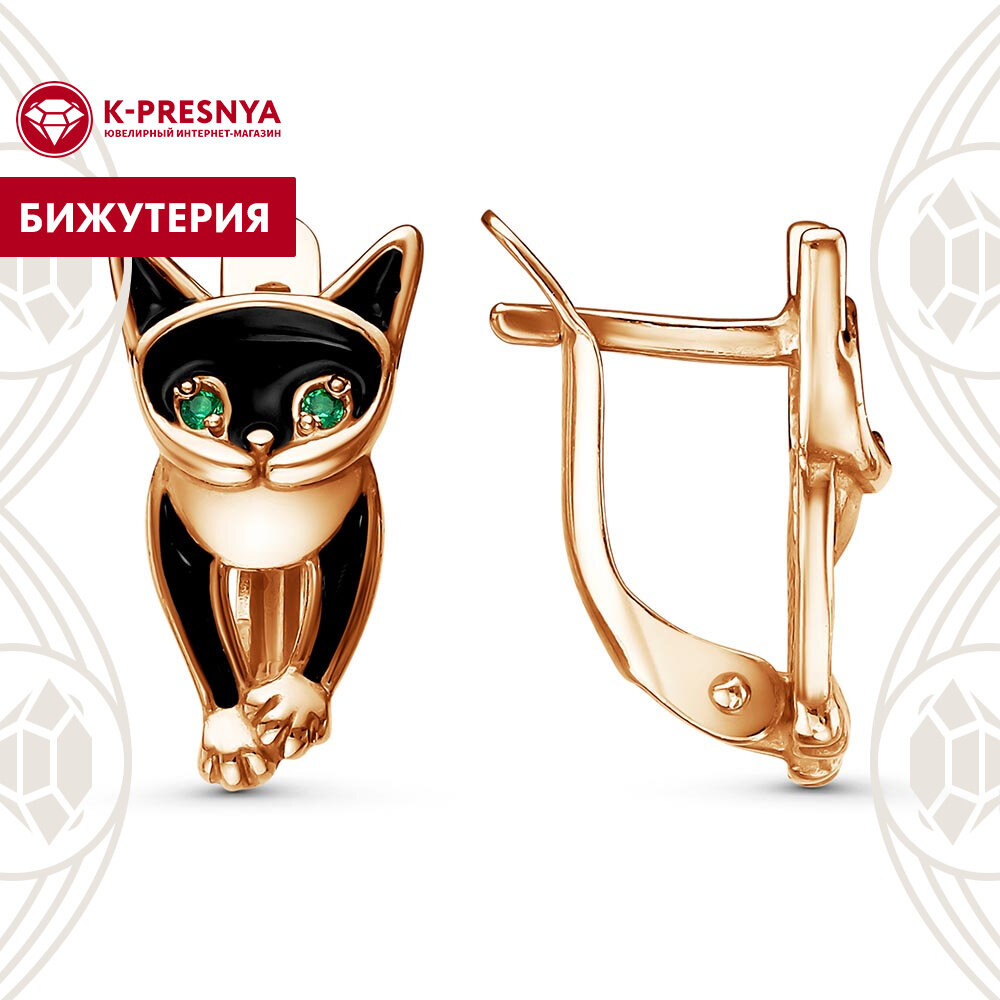 Купить Серьги Красная Пресня бижутерия, покрытие - золочение, отделка - эмаль, вставка - искусственная шпинель