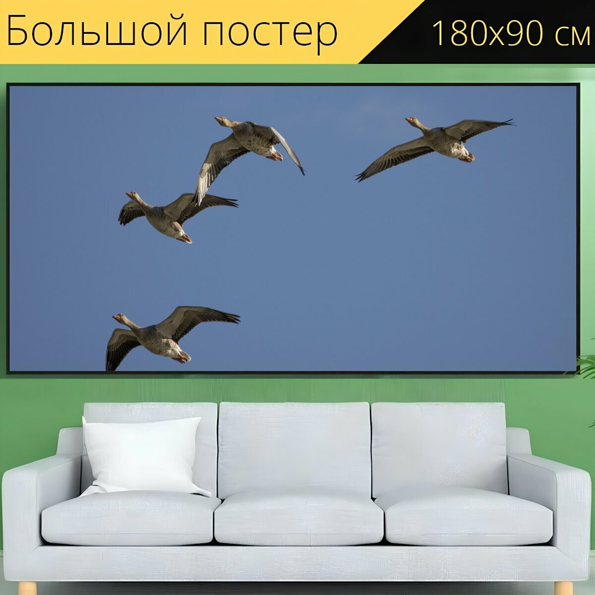 Большой постер "Гуси, полет, свобода" 180 x 90 см. для интерьера интересное:
