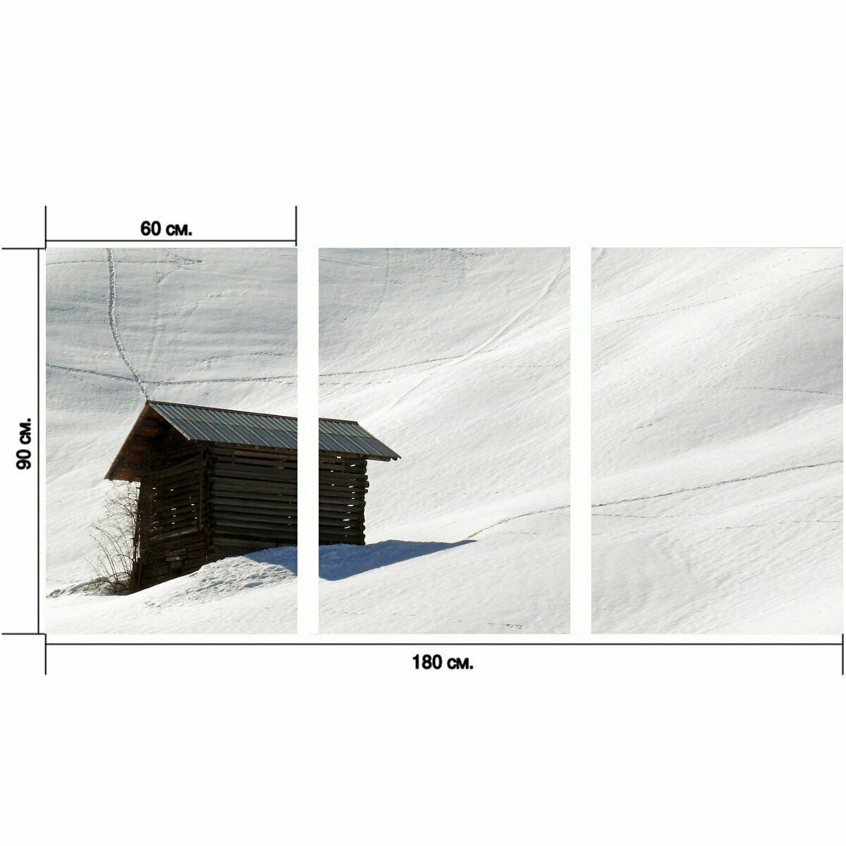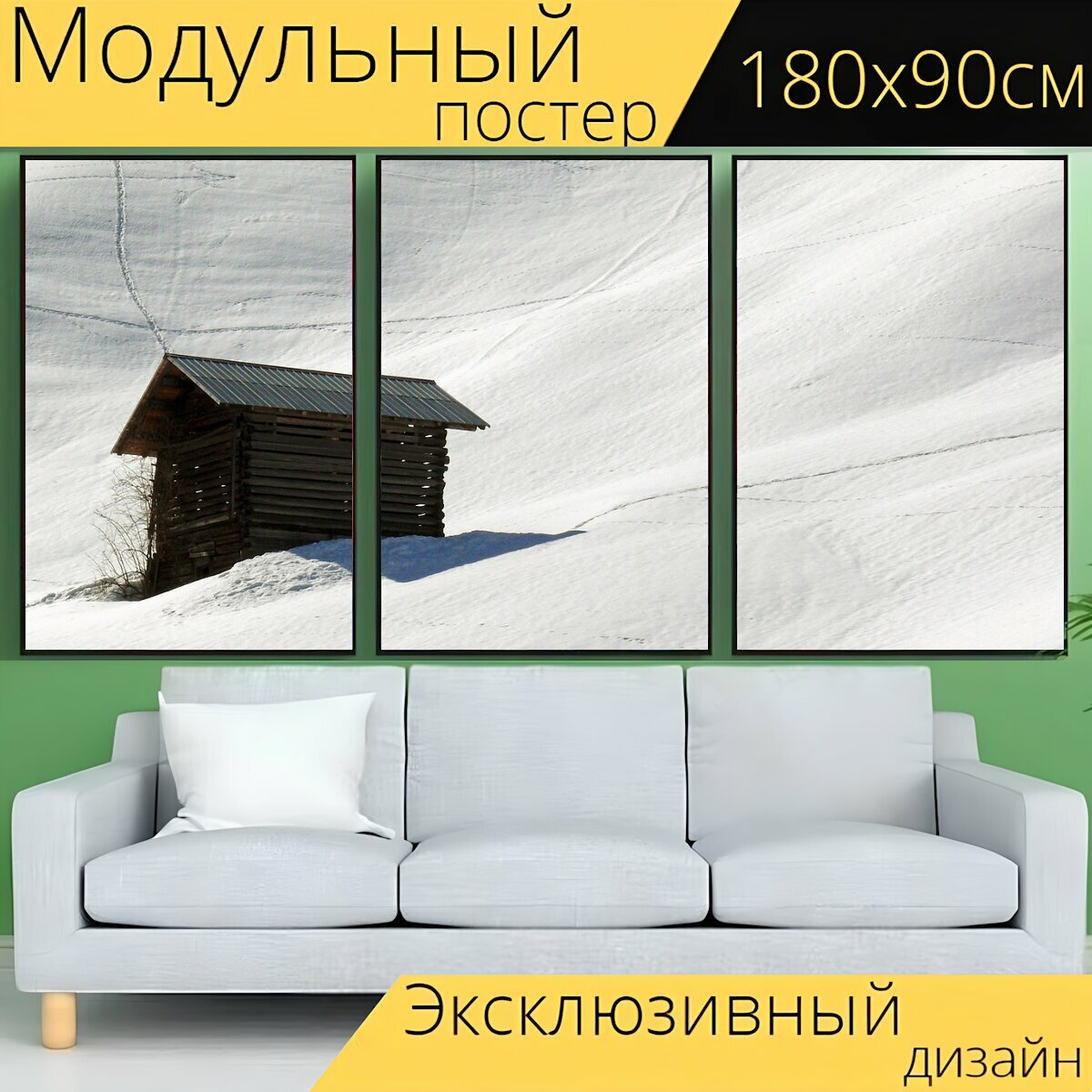 Модульный постер "Гора, хижина, снег" 180 x 90 см. для интерьера интересное: