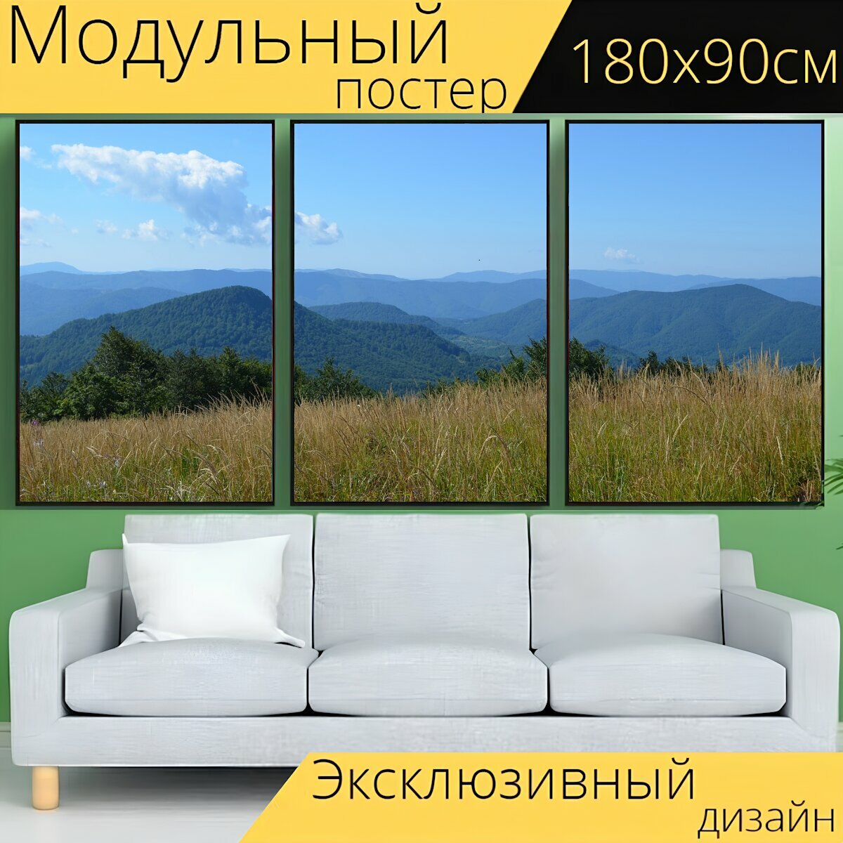 Модульный постер "Горы, бещады, небо" 180 x 90 см. для интерьера интересное: